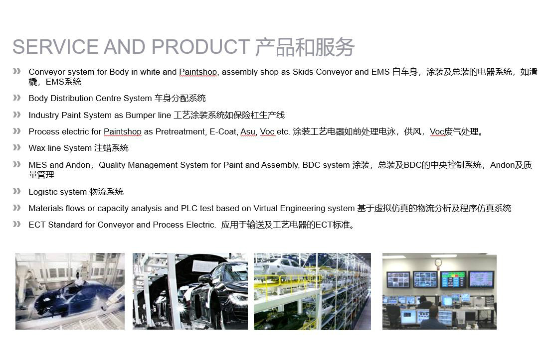 金沙威尼斯主要服务于大众汽车,宝马,奔驰,奇瑞等国内大部分汽车厂的自动化项目。 可以提供车身,涂装,总装的自动化生产线的解决方案,公司拥有符合汽车行业标准的硬件,软件,制作规范,及一批在汽车自动化行业杰出的设计工程师,并致力于不断为客户提供最新的自动化技术。